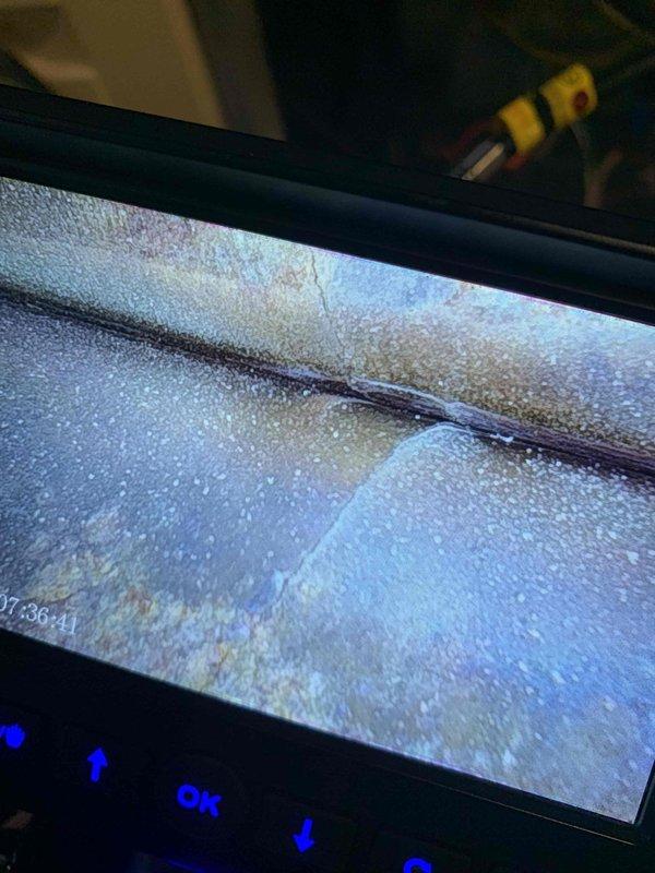 Performed inspection of secondary furnace heat exchanger utilizing borescope camera following recent replacement of primary unit. Visual examination revealed possible condensation and a horizontal crack in the heat exchanger surface, documented with digital imagery for assessment.